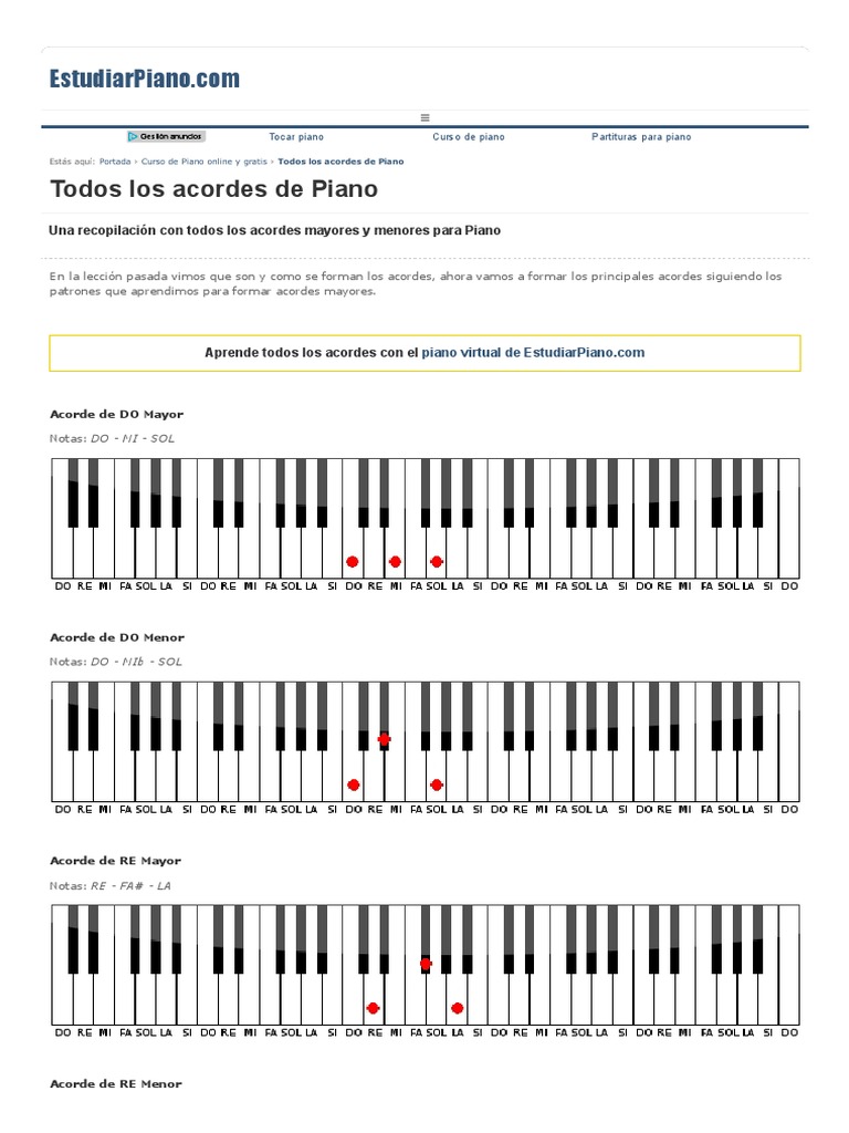 Acordes Piano Notas / Varias notas acordes (triadas) tocadas simultaneamente. Acordes Piano Notas : Aqui encontraran notas para el piano electronico 2.5.