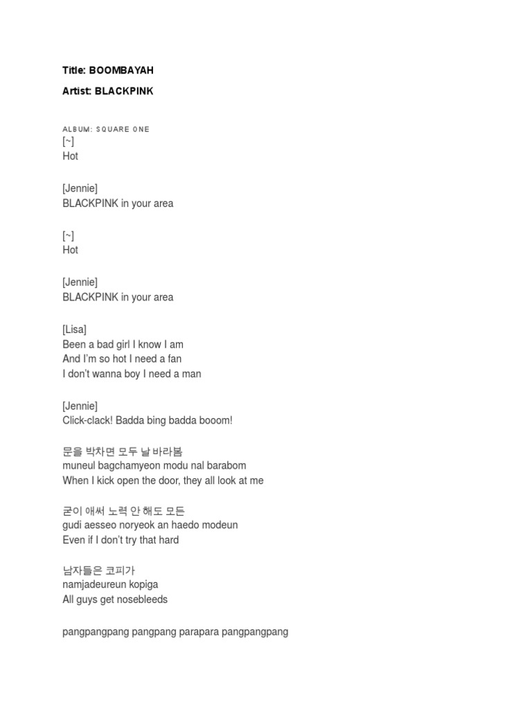 Boombayah Letra / Letras de boombayah por blackpink.