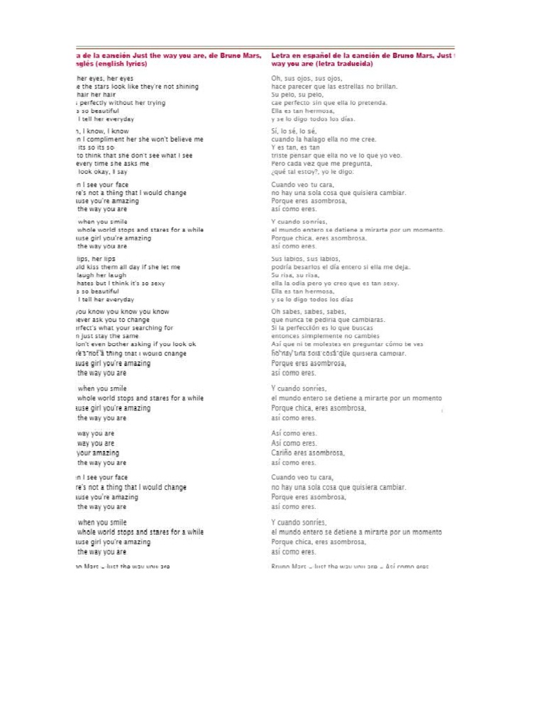 Cancion De Bruno Mars Just The Way You Are Letra En Español - Aprenda a tocar a cifra de just the way you are (bruno mars) no cifra club. Cancion De Bruno Mars Just The Way You Are Letra En Español : Esta pagina contiene tres partes.