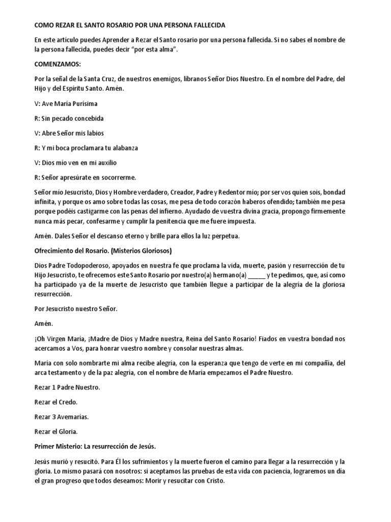 Como Rezar El Rosario Por Una Persona Fallecida 3 Pasos - Nos ocuparemos de que los difuntos vuelvan a su descanso eterno.