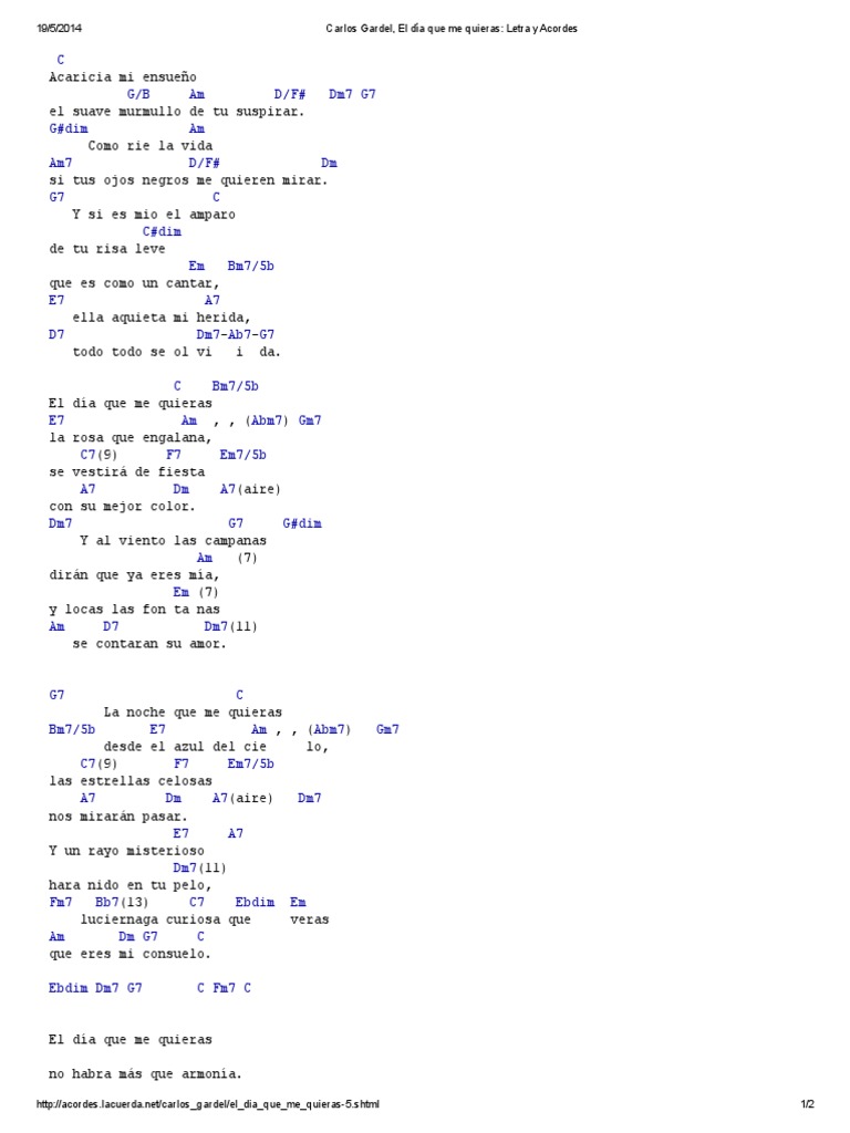 El Dia Que Me Quieras Carlos Gardel Letra - Letra y acordes de guitarra. El Dia Que Me Quieras Carlos Gardel Letra : D7 ella aquieta mi herida.