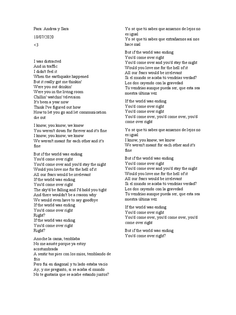 If The World Was Ending Letra / Jp saxe evaluna montaner if the world was ending letra lyrics. If The World Was Ending Letra : Ab you'd come over, you'd come over, you'd.