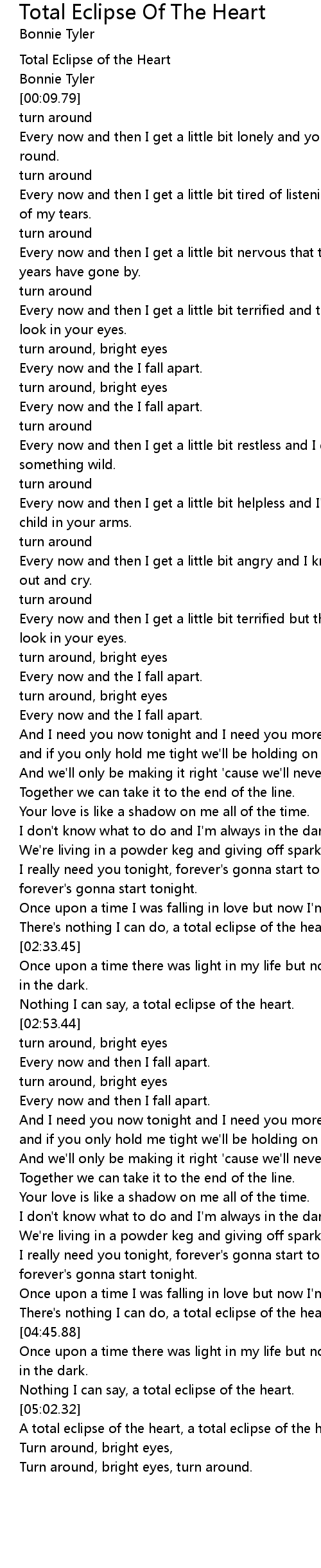 Turn Around Bright Eyes Lyrics / Every now and then, i fall apart. Turn Around Bright Eyes Lyrics - But then i see the look in your eyes.