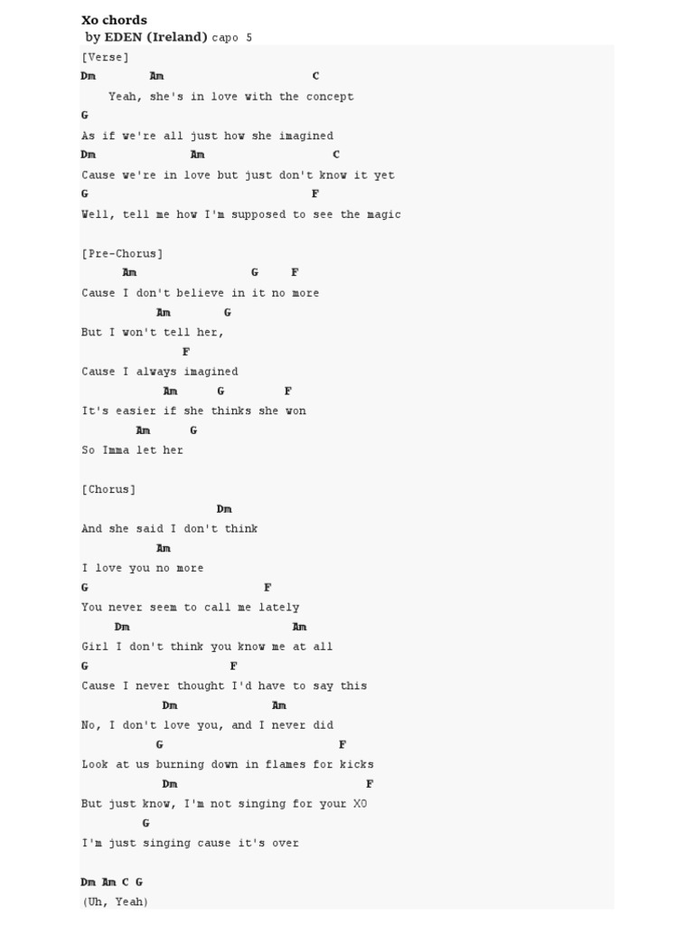 Xo Eden Chords : Sorry, this lyrics is currently not available. Xo Eden Chords : Back | video and audio performances by our users (0).